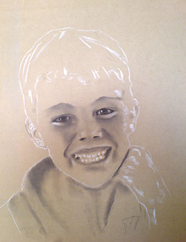 This chiaroscuro portrait of Angus shows its development - Chalk and Charcoal on MDF Board - (60cm x 45cm)