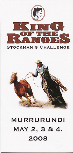 With trophies, prizes and cash to be won, the competition will be strong and intense. Both men and women will be~ competing head to head to be crowned the 2008 King; Of The Ranges Stockman's Challenge winner. A junior competition is for 15 to 17 year olds, and they will be sashed the Junior Winner also receiving prizes and cash.