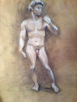 Sudents used Michelangelo's statue of "David" as their study and based their drawing on the 7.5 cannon proportion ratio.
