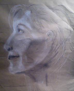 Art Students have been developing their skills in life drawings. Here are examples of their use of tonal qualities to develop three dimensional attributes with profiles of the human face - female.