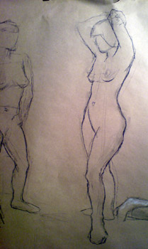 Art Students have been developing their skills in life drawings. Here are examples of their use of tonal qualities to develop three dimensional attributes with profiles of the human body and portraiture.