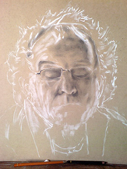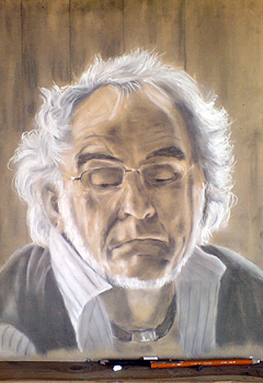 The images below trace the development a self portrait by Rodney Swansborough from the preliminary sketch to final completion.
