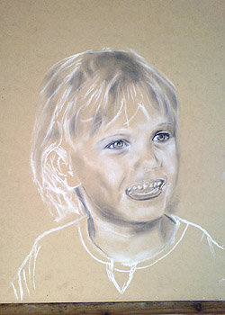 The images below trace the development of a commissioned portrait by Rodney Swansborough from the preliminary sketch to final completion.