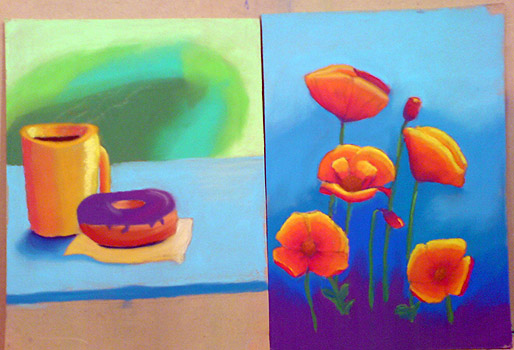 Rodney Swansborough conducted a two-day workshop with 8 students where they were taught the basic techniques of pastel painting. Below are examples of their pastel painting exercises on prepared mdf board.