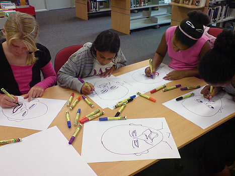"Balloon Portraits" throughout the Upper Hunter of New South Wales in January 2008 for the Upper Hunter Regional Libraries. The Muswellbrook and Denman workshos are below.