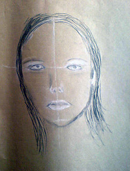 Students undertook extensive and closely supervised instruction in the Chiaroscuro method in portraiture. Students were given a series of simple exercises to become familiar with the method and mediums used. Below is a portrait study with examples of drawings by the students.